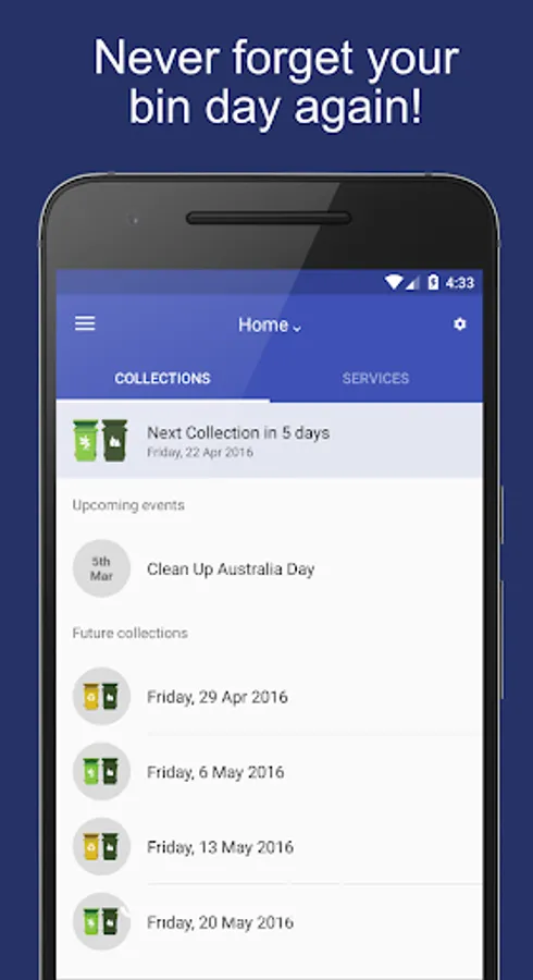 Find out when your rubbish bin gets collected and if it's recycling week. The app lets you quickly see your current and upcoming bin collections.