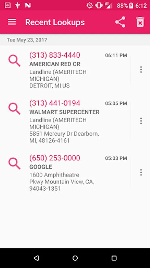 This app allows you to perform a 100% free reverse phone lookup search of U.S. numbers. No logins or subscriptions required!