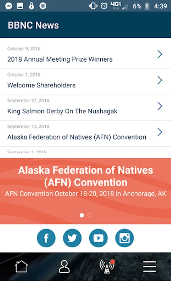Convenient and secure, Bristol Bay Native Corporation provides the myBBNC app as a way to continually serve our shareholders better. The app provides shareholders with an easy way to view and update contact and distribution information, and more. Ward information can also be managed within the same login. The news page provides access to BBNC news and special shareholder announcements.