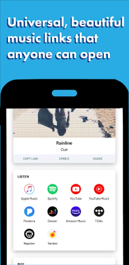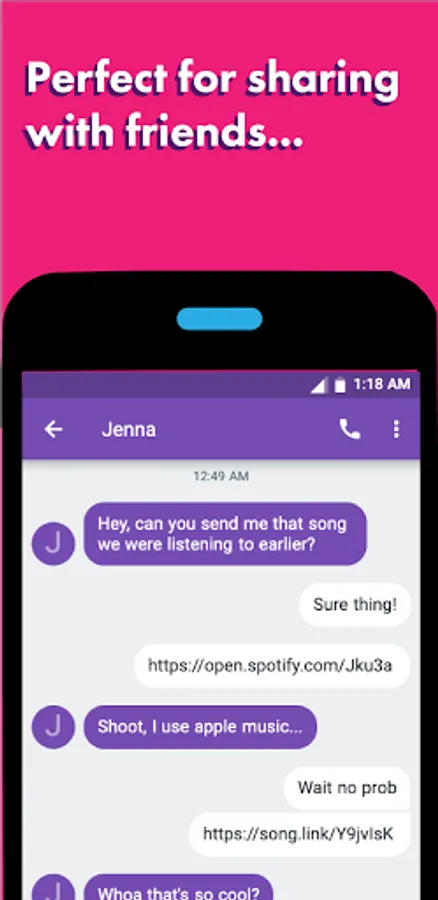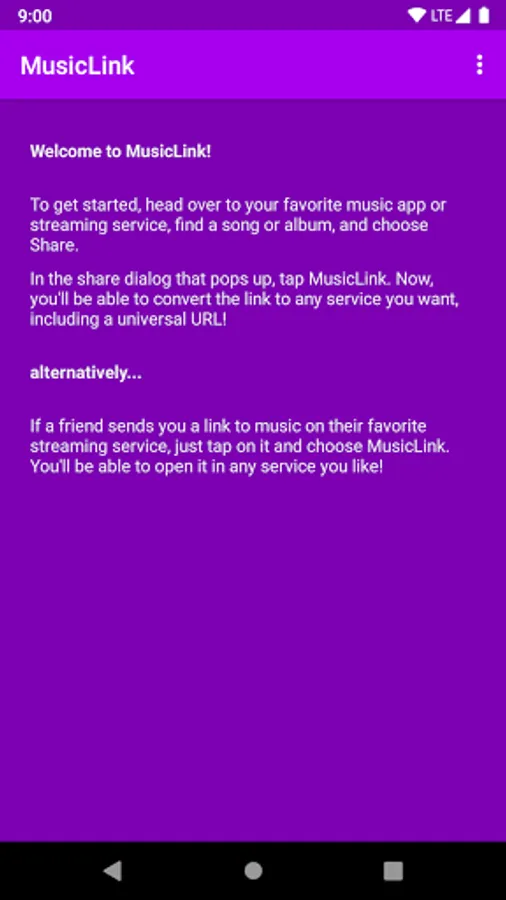 Introducing MusicLink, the first app that makes it easy to share your songs with everyone, and listen to songs your friends send you. Just install the app, follow the onscreen instructions, and open the link to a song you are sent. Instantly, you will be able to open the song in any music app of your choice! Alternatively, share any song link from your favorite music app, select MusicLink in the sharing menu, and your URL will be converted to a universal song URL that anyone can open!