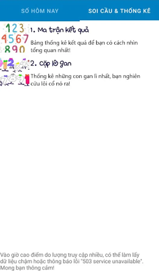 Please download the app "XSMN Soi Standard" to experience, the app is in the process of development, so there will be many new features, you should update to the latest version!
