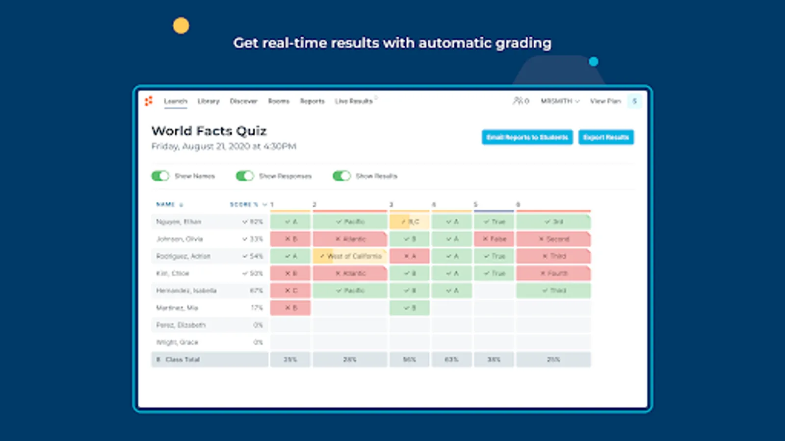 • View students results in real time