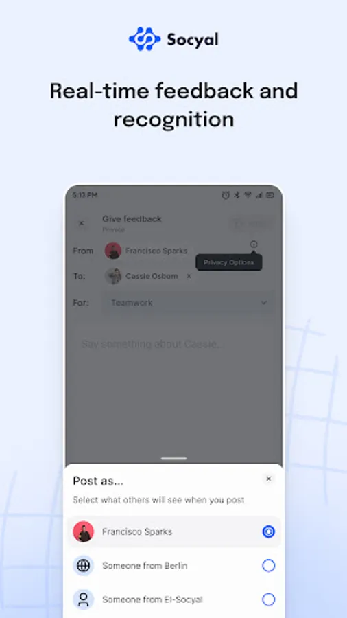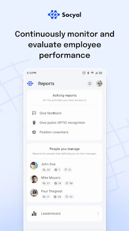 Your feedback, recognitions, and insights are sensitive, and we get that. Socyal uses top-tier encryption and security protocols, ensuring your data remains private and protected.