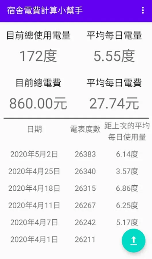 幫你計算您的電費、每日平均用電、總電費、每日平均花費