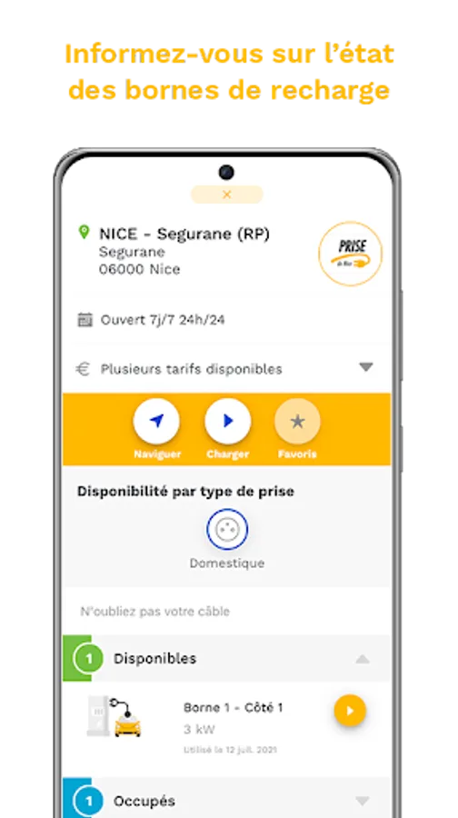 Thanks to the Nice Socket app, find the nearest terminal, book it and recharge by paying directly with your smartphone.