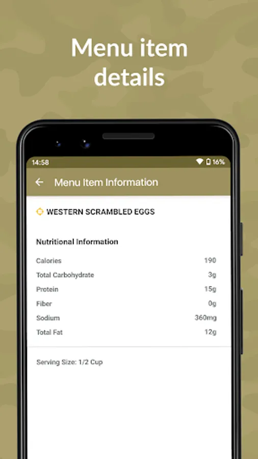 • Get detailed information on menu items including color coding, serving size and nutritional attributes