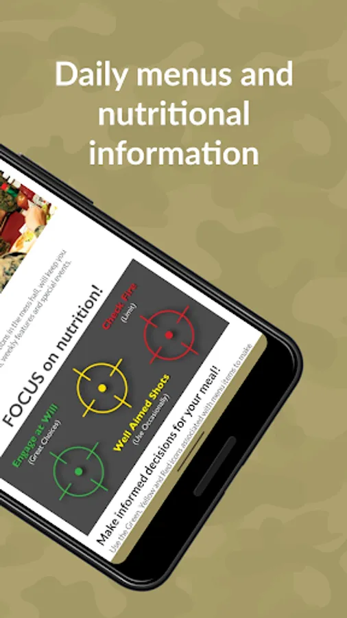 • View monthly events, promotions and additional information about the mess halls in the News feed