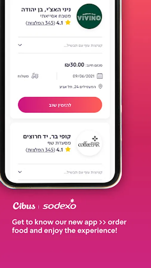 Cibus customers - Through the Cibus Sodexo application you can order meals in the delivery & take away from a variety of restaurants or locate restaurants in your area.