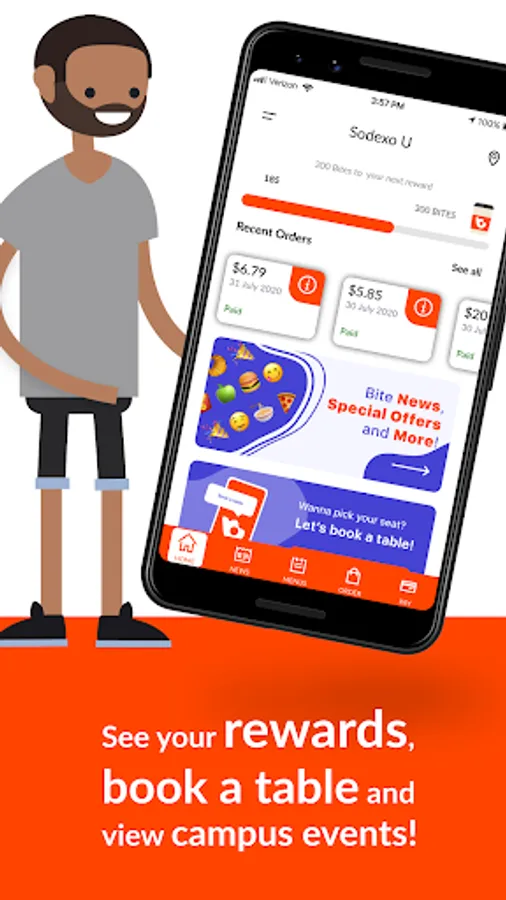 Bite for Universities is your mealtime companion. Our all-new app features contactless pickup options on your campus. Browse dining options, order and pay with your campus card and earn rewards when you use our new Bite Pay card.