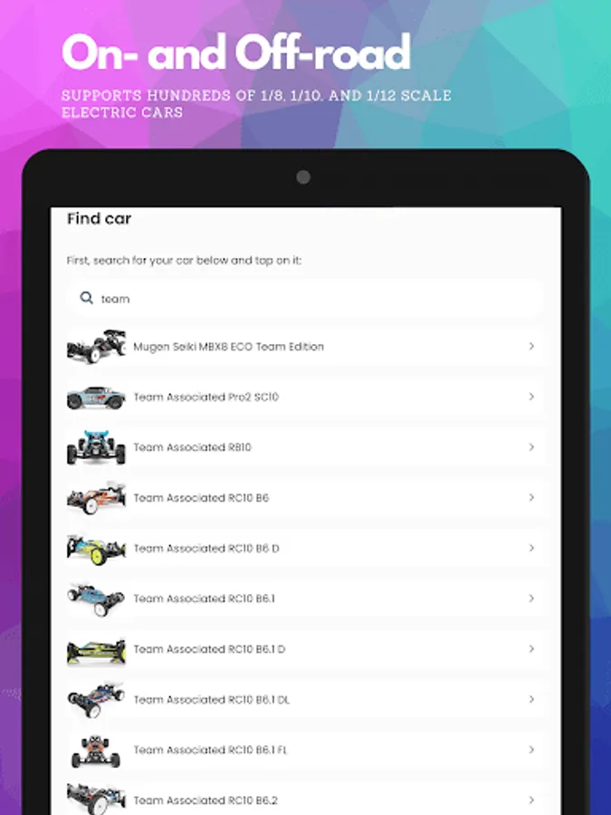 - Electric cars and trucks, 1/8, 1/10, and 1/12 scale