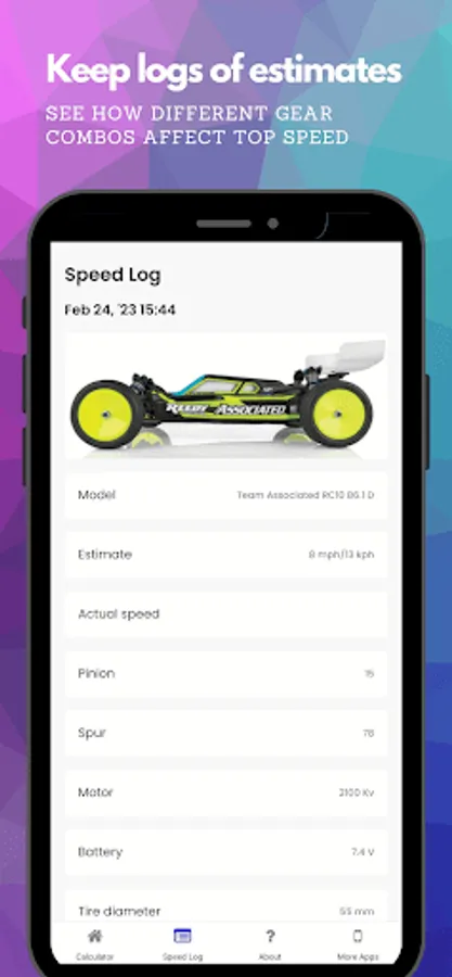 Record your estimates to compare different car setups, and if you have a speed gun, you can record your actual top speed along with the estimate.