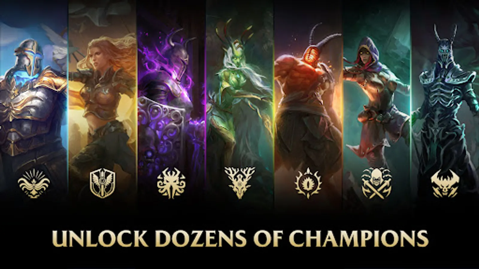 Unite and rise with Champions from a wide range of iconic backgrounds. Choose from a host of formidable factions such as sanctified Seraphim, Verdant Offspring, and Void Lords. Explore dozens of Champions bringing unique skills and stories. Many more Champions are planned over time.