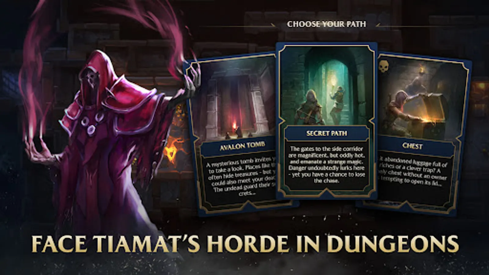 Scour for legendary loot and epic bonuses in shrines, and face Tiamat’s heralds on the paths of the treacherous dungeons. Choose your Champions and strategy wisely to get through all the challenges and prevail.