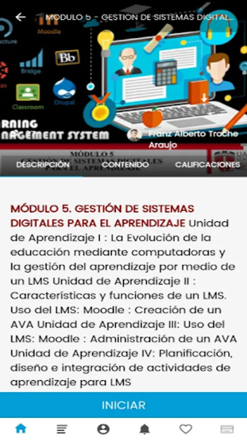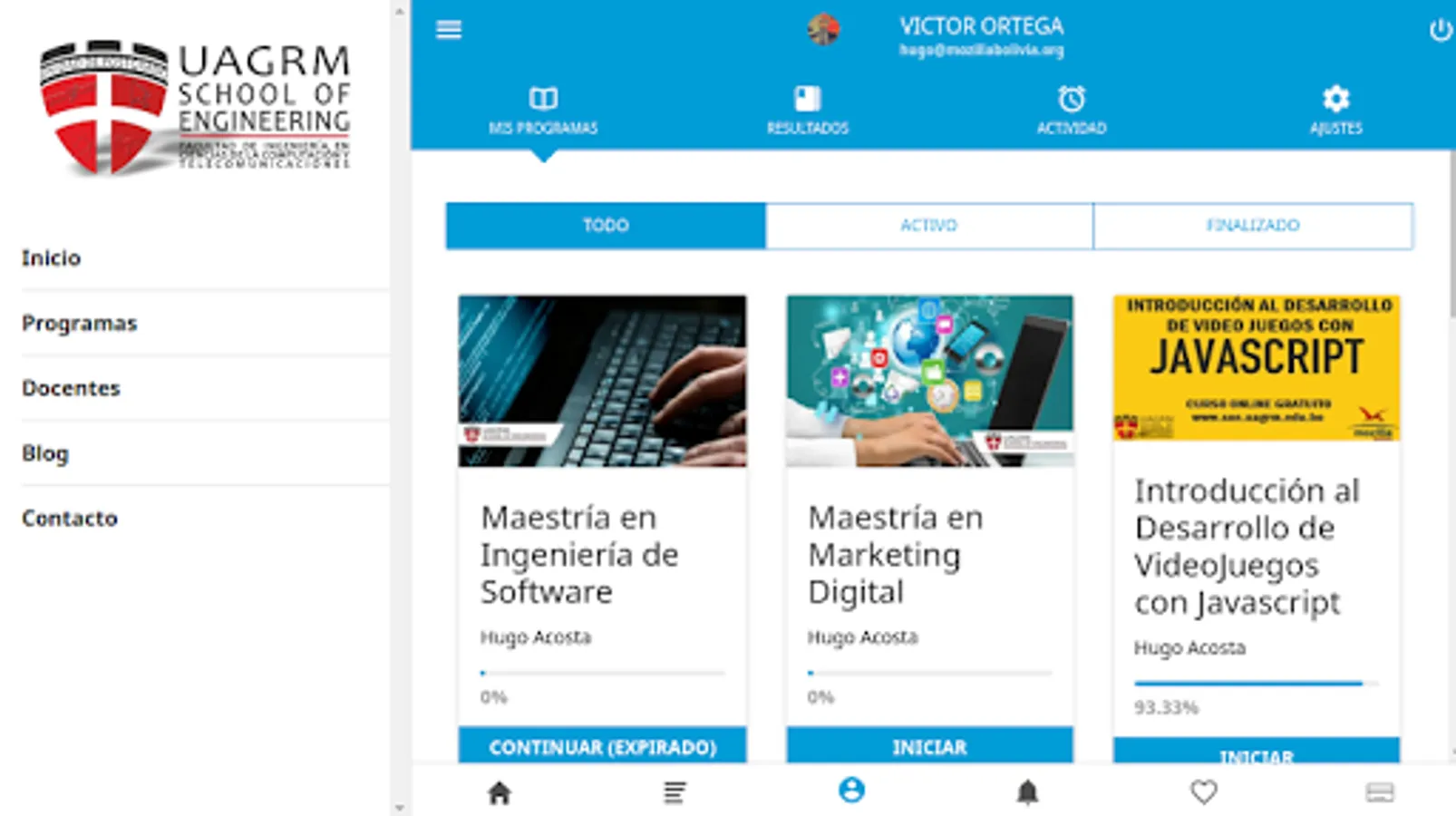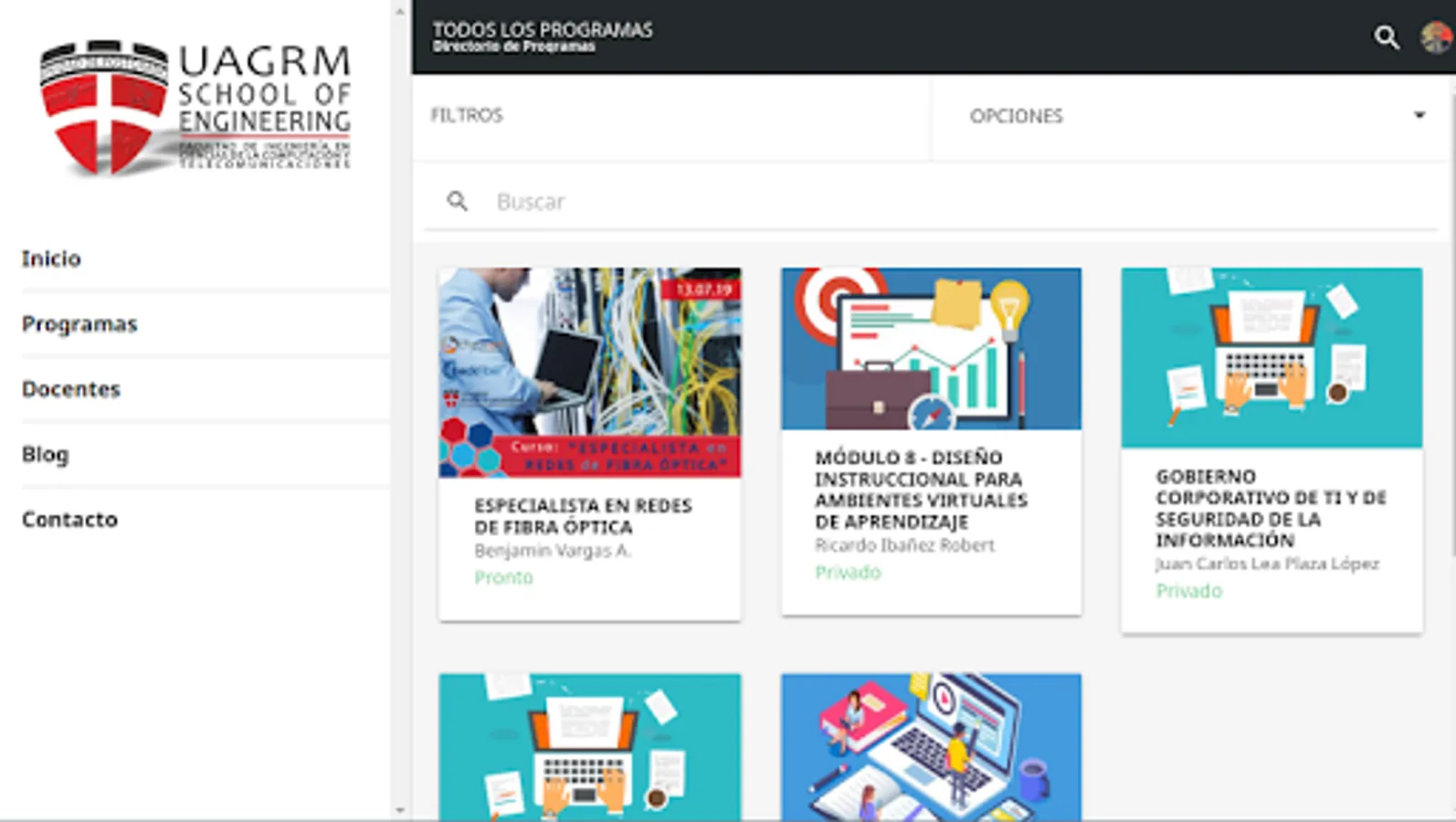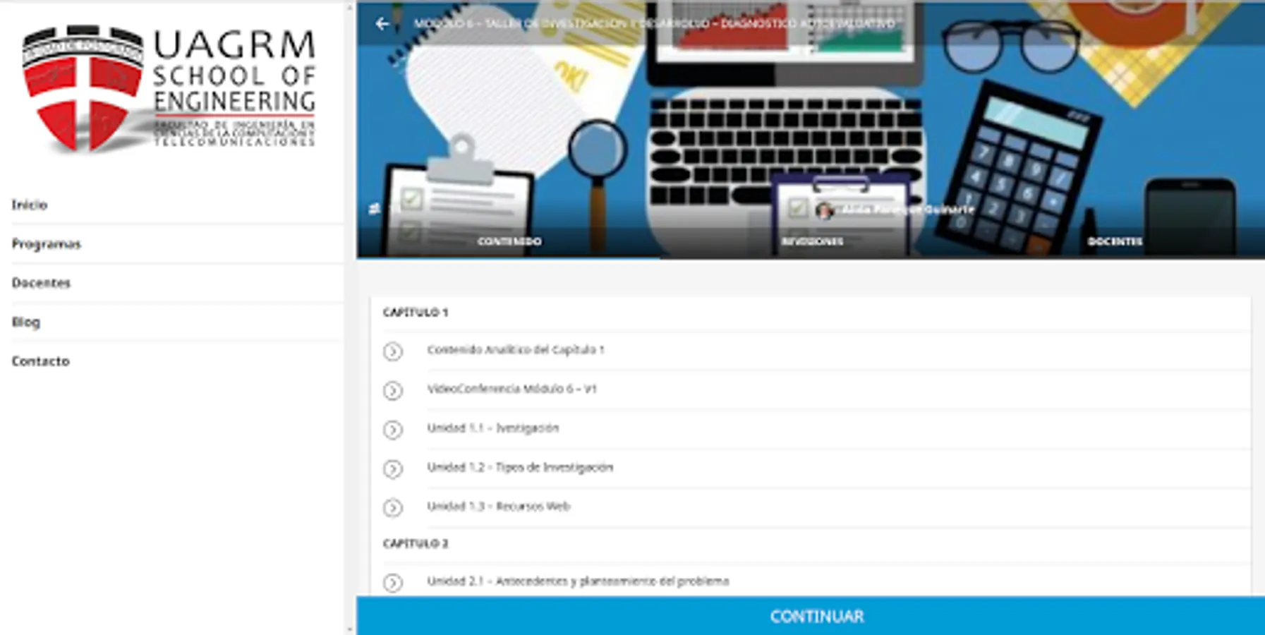 The educational platform of the Postgraduate Unit of the Faculty of Engineering in Computer Science and Telecommunications, is designed to provide solutions in the development of Masters, Diplomas and Courses, in the area of Computer Science and Telecommunications. Offers certified by the Gabriel René Moreno Autonomous University.