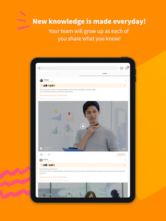 Your collegues can share what they knew in a form of short movie or texts, so that you can learn from it anytime, anywhere.