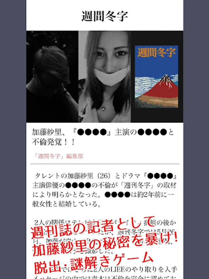 不倫疑惑の加藤紗里【謎解き/脱出ゲーム】