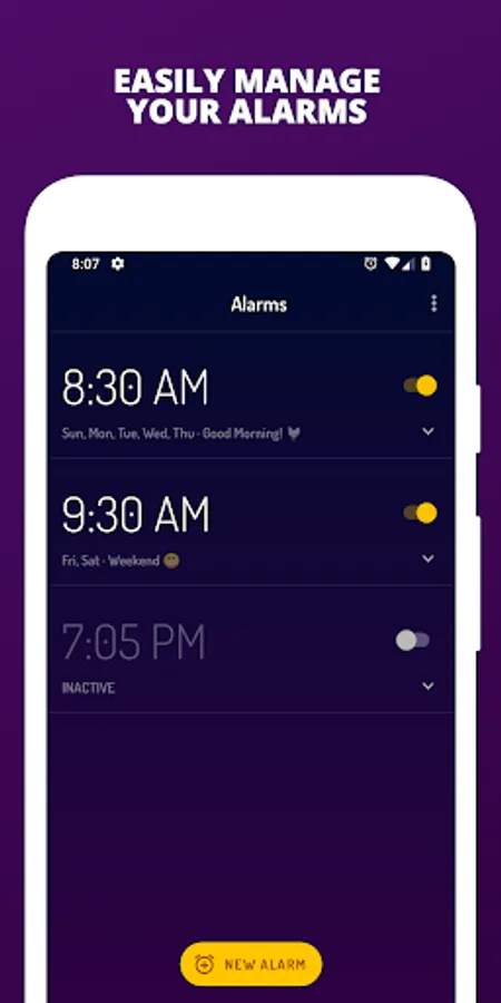 • Swipe to Dismiss: Snooze or Dismiss the alarm with a simple swipe