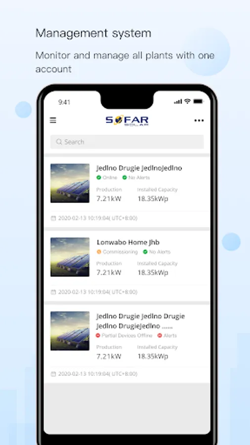 Go to SOFAR View APP to check running status of PV power plant at anytime and anywhere.