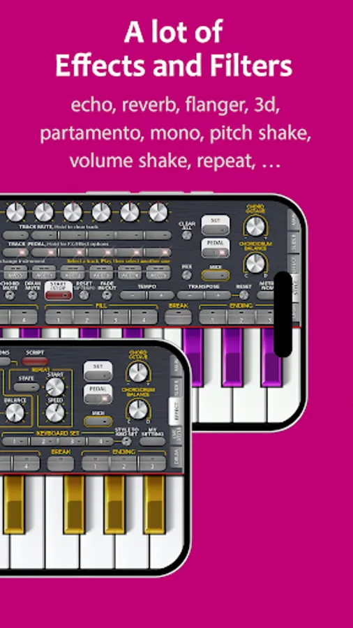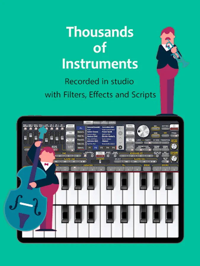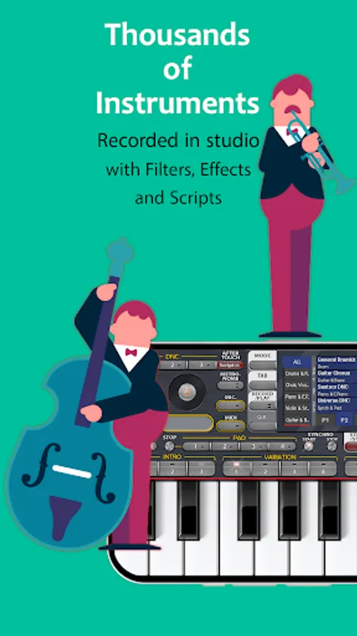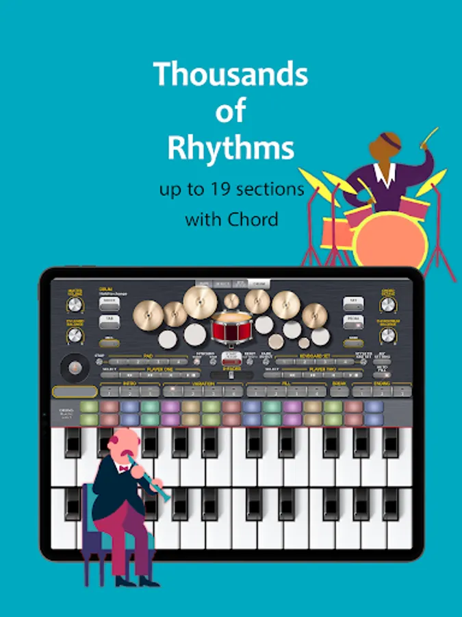 • Thousands of rhythms, Including Intros, Variations, Fill, Break, Endings, and Pads, with Real chords (Press 3 or more keys) such as Pop, Jazz, Rock, Arabic, Turkish, Hindi, …