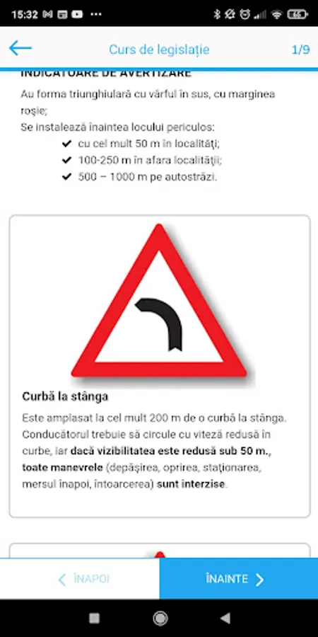 - Indicatoare și marcaje rutiere (indicatoare auto de prioritate, avertizare, obligare etc.), cu descriere și imagini.