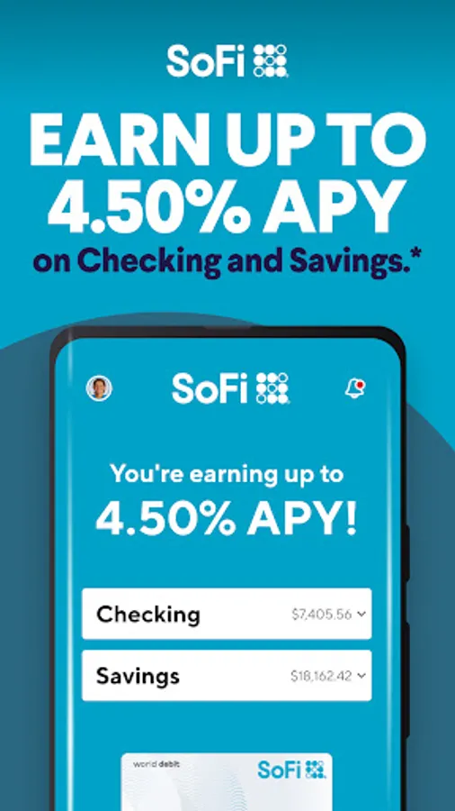 - SoFi mobile banking users can earn up to 4.50% APY on their checking and savings accounts.*
