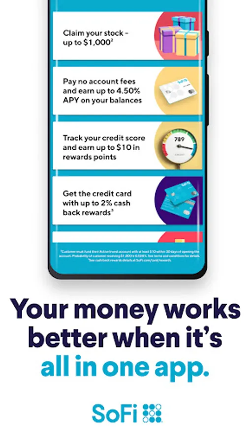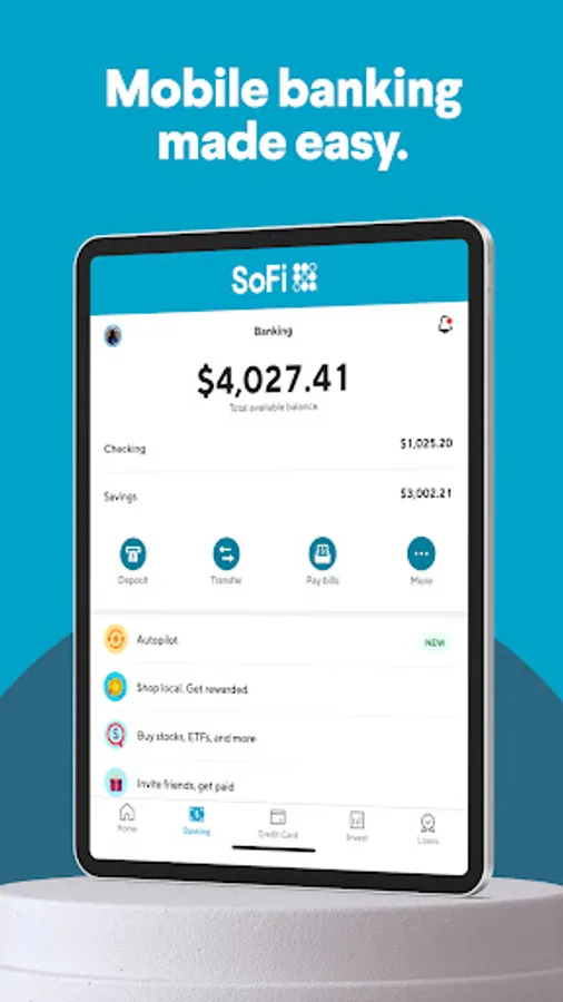 SoFi is mobile banking made easy. If you’re interested in investing, you can get up to $1000 in free stock when you fund a SoFi Invest account. Our app enables you to pay bills, find ATMs, send money, make mobile deposits, and more.