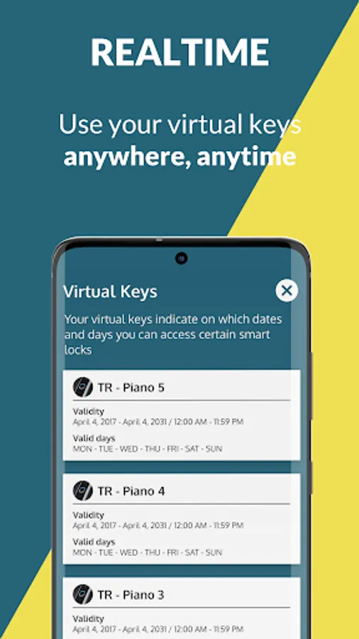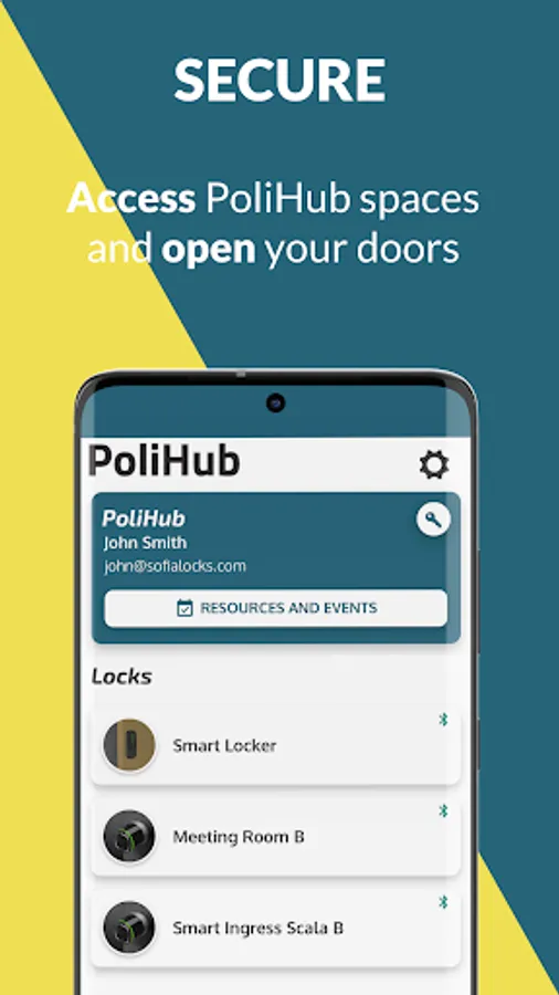 The user rights are attached and securely stored in the secure cloud: After you log in the App Polihub the account created by the operator will be coupled to the user's device, thus creating a smart badge.
