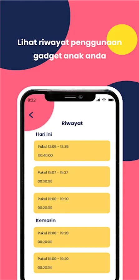 Take advantage of the potential of gadgets for early childhood by limiting the time they are used in a more effective and efficient way. This application can help parents limit the time to play gadgets in early childhood by stopping gadget activity immediately when the predetermined time is up. Parents can determine children's play time so that the use of gadgets can be limited periodically so as to minimize the negative impact such as gadgets on early childhood.