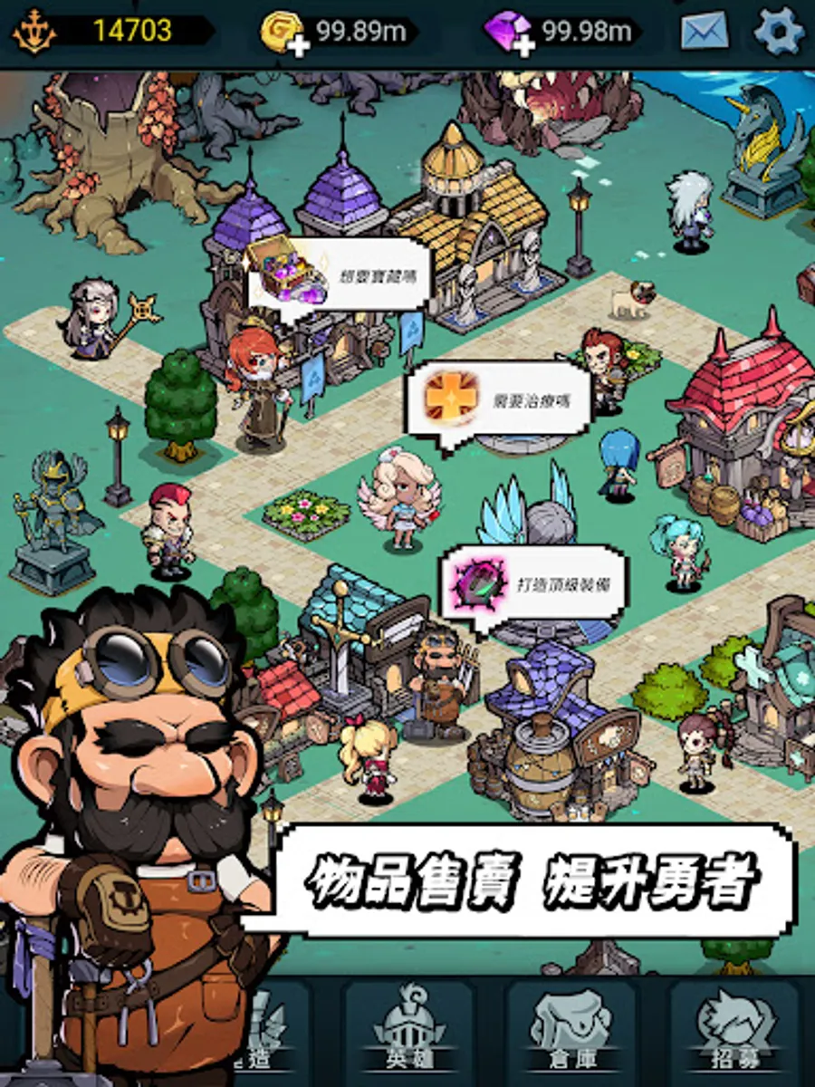 [Equipment building and selling] In the weapon shop, armor shop, jewelry shop and other buildings, use materials to build equipment, sell them to heroes who need to be strengthened, earn gold coins, and greatly improve the abilities of heroes.