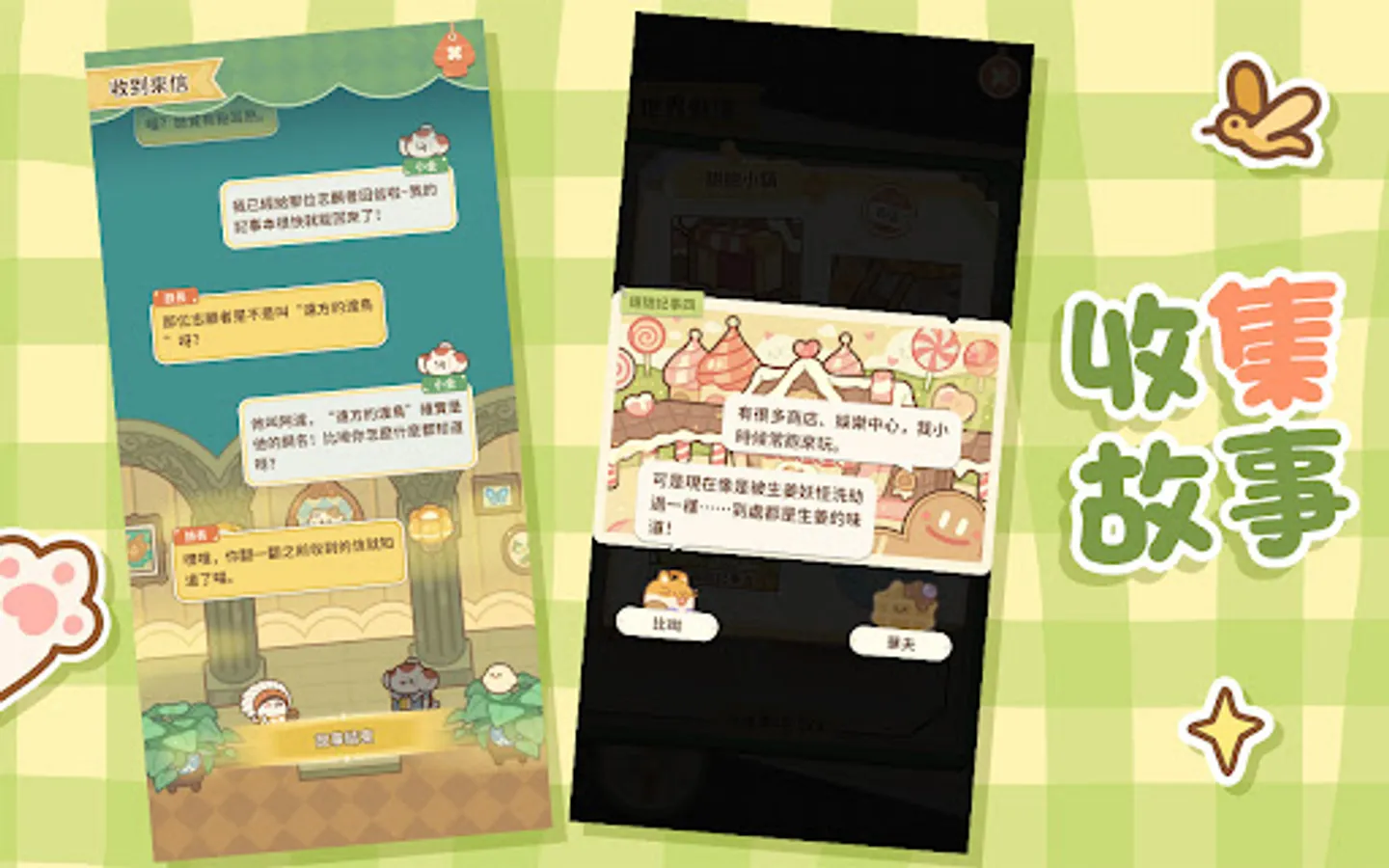 - Cooking: Unlock recipes to make delicious pastries, ramen, cakes, salads, forest fondue, soup made by cat clerks...