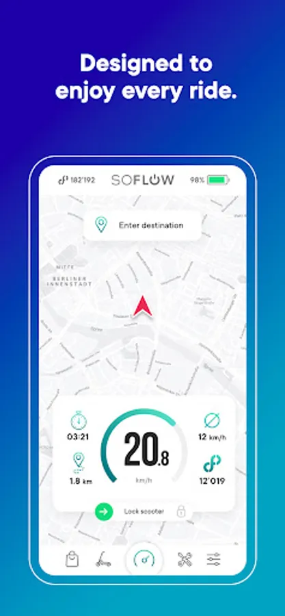 This app accompanies you and your scooter through everyday life. Lock your scooter electronically, have your travel journey displayed on a map, check the battery charge status, and much more.