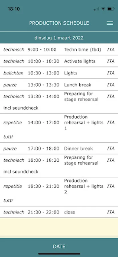 The app is linked to the encore-database, and gives the possibility to overview production information, and working schedules.
