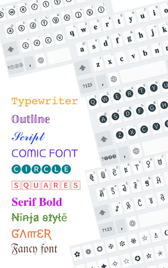 Whether you want gothic fonts, cursive writing, serif fonts style, italics and bold, or script fonts, this fancy stylish fonts keyboard app has them all.