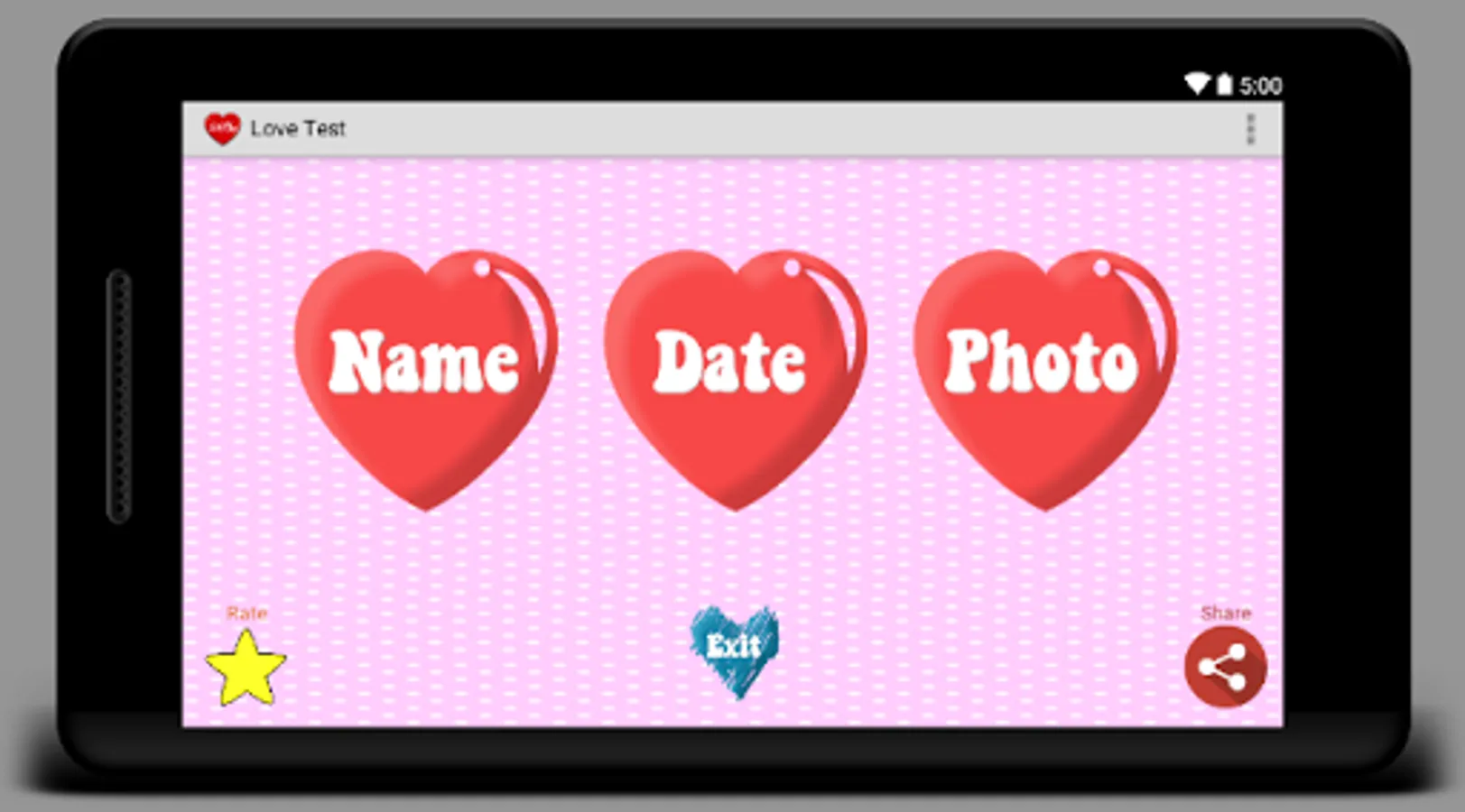 - Photo Match : Could show the love percentage by scanning the photo of the boy vs girl using love calculator.