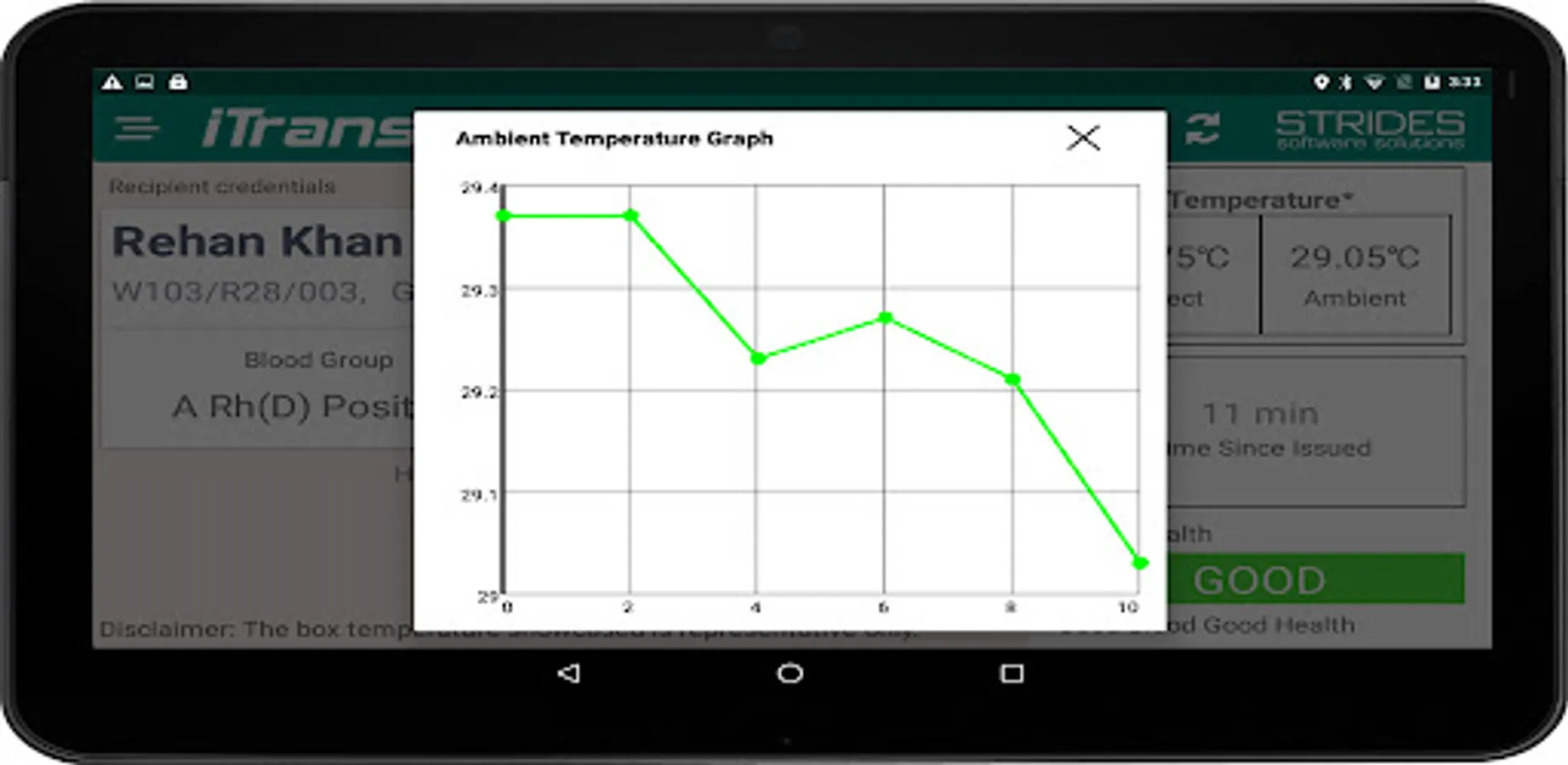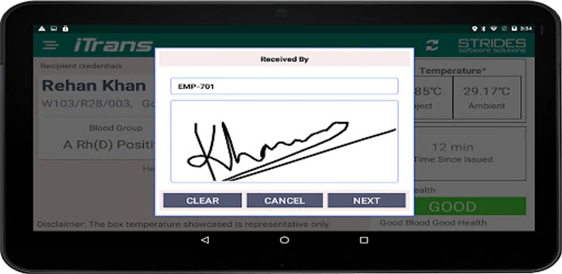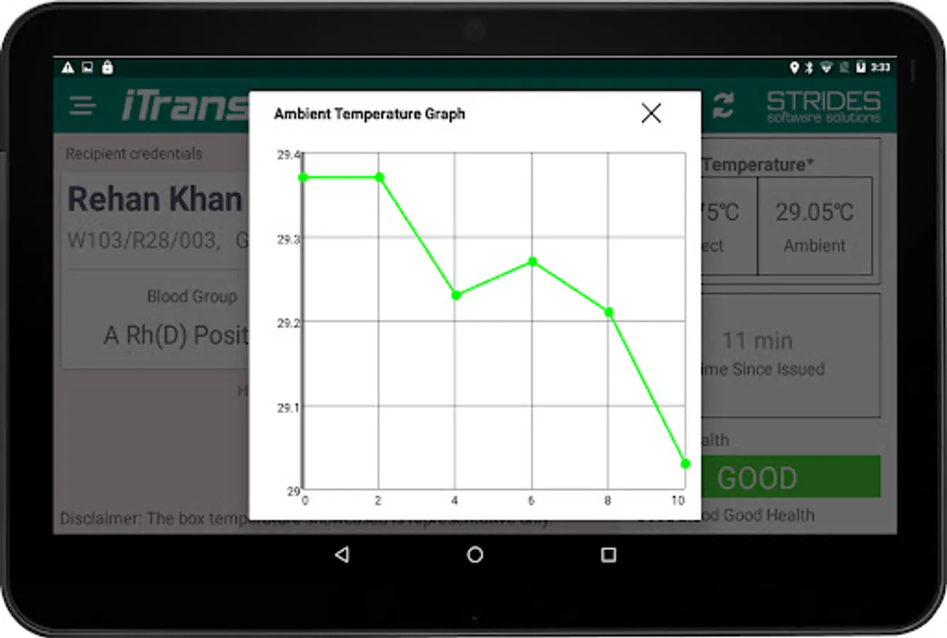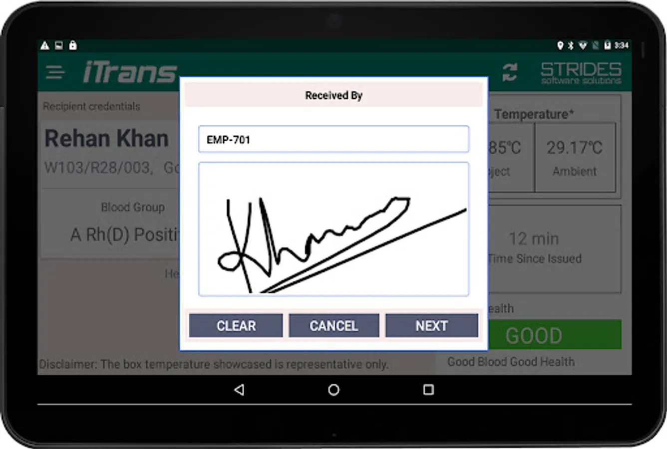iTrans is a special box with an embedded circuit, lock and a touch screen display on the top. The Box has a software embedded onto it. iTrans works in both standalone mode as well as in software integrated mode. The blood transportation box auto locks as per the patient id for whom the bags are issued. At the patient bed side, the blood transportation box open only when the correct patient ID is entered on the box top touch screen. the blood transportation box allows remote locking by the blood banks in case of exceptions like reactive advanced test results, exceptions of temperature time etc.