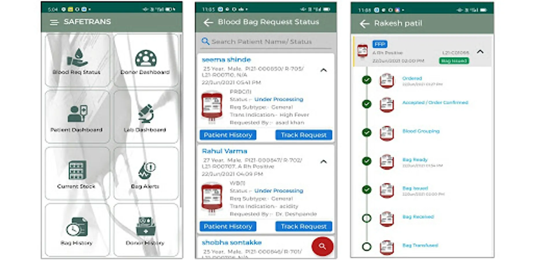Safetrans Trace is an extension of Safetrans - A blood bank traceability software system. It helps the users of safetrans to track and trace each activity of the blood transfusion lifecycle and helps the user act on critical points in a timely manner