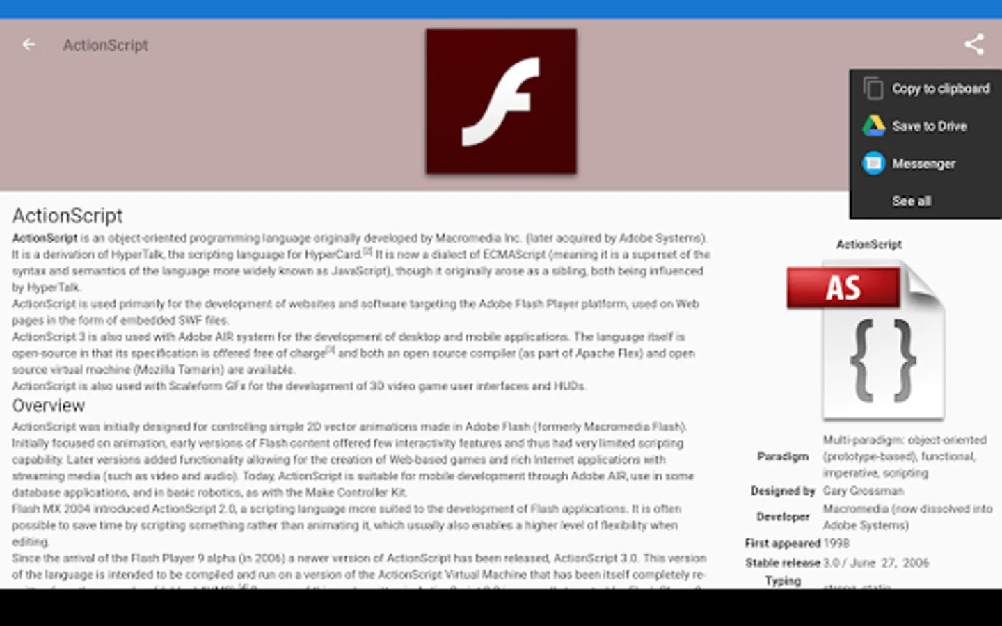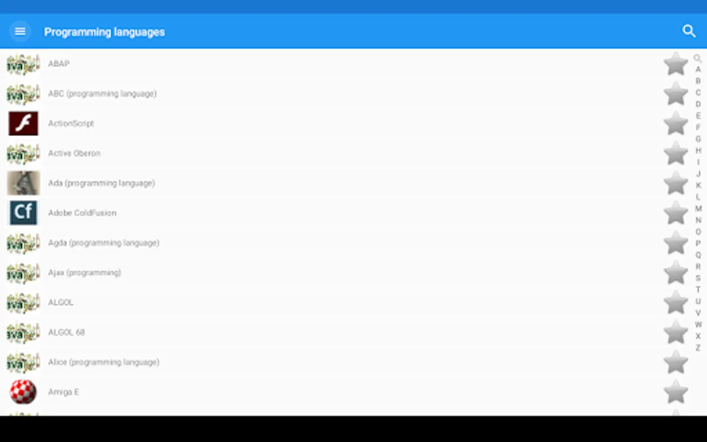 The free application "Programming languages" is very friendly, it has a beautiful and simple interface. The best choice for a pocket dictionary that is always at hand. From which you can learn a lot of new and interesting things, for example, that: