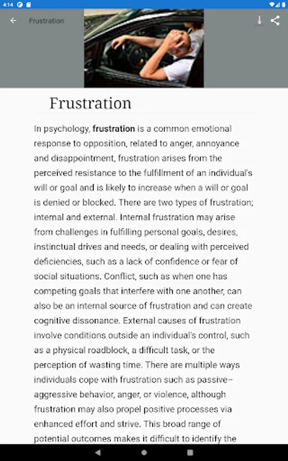 The free psychology app "Psychological concepts" is very friendly, it has a beautiful and simple interface. The best choice for a pocket dictionary that is always at hand. We have studied many free psychology books and here are some interesting psychological facts, that you will find in our free app: