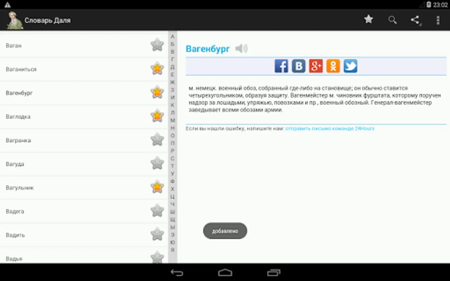 Explanatory Dictionary of Russian language. One of the largest Russian dictionary. Contains about 200,000 words and 30,000 proverbs, riddles and sayings that are used to explain the meaning of words cited.