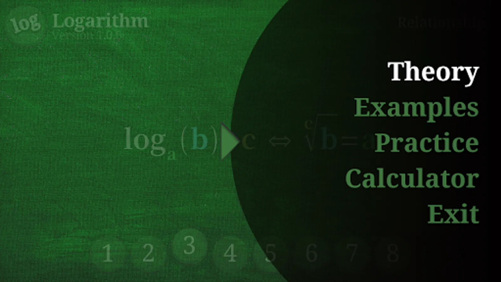 Theory, examples, practice and a simple calculator to learn logarithms.