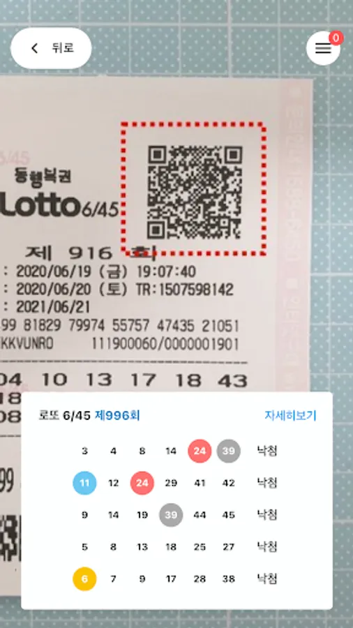 ・ Lotto paper QR code scan (QR code notification function that has already been checked)