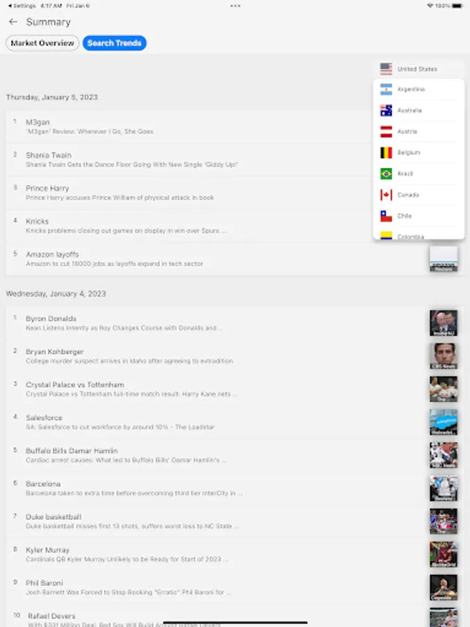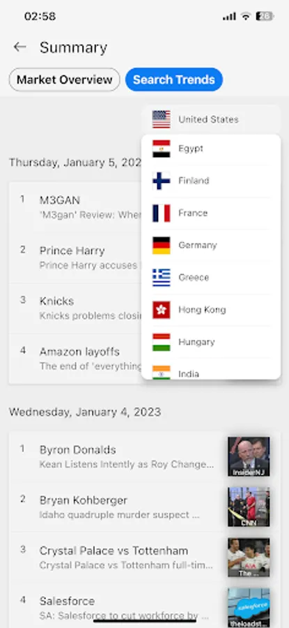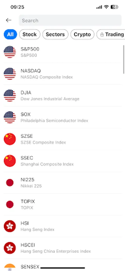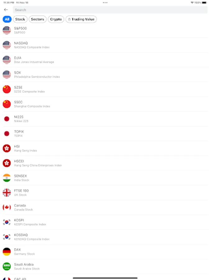 ◎ Find out the stock trends of domestic and foreign companies by searching for a country or stock index.