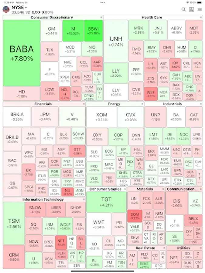 • You can visually see the value of companies in 35 industries, including automakers, airlines, and banks.