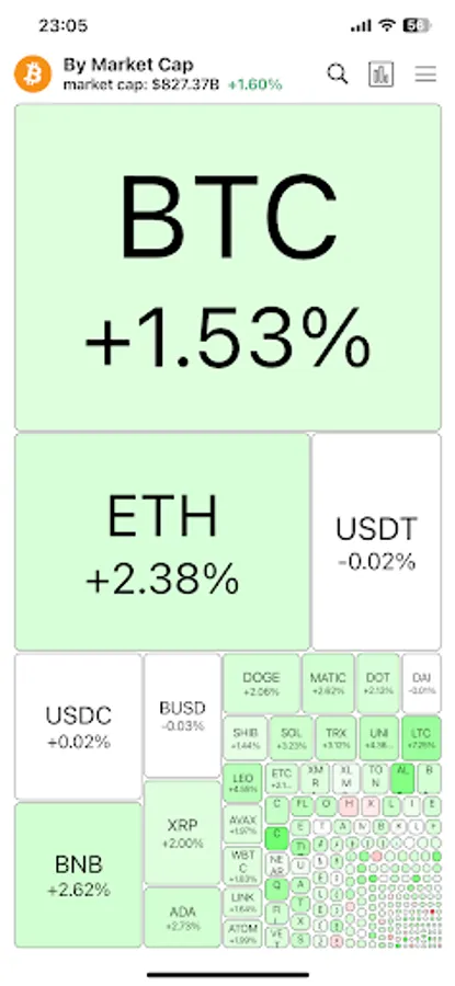 ◎ App supports 10 coin categories as well as crypto market cap heatmap.