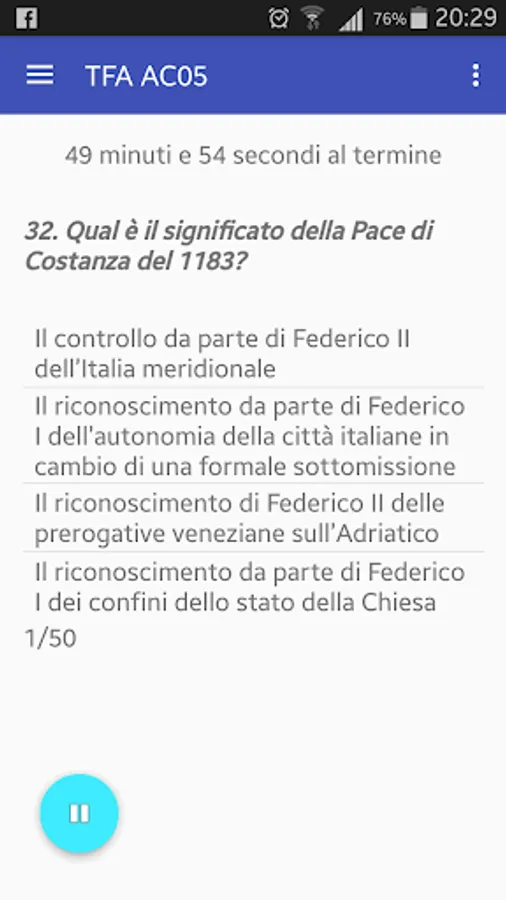 TFA AC05 is an application that allows you to practice for admission to the Internship Training Active tests TFA for Italian, History and Civics, Geography in the Middle School and Literary Subjects in secondary schools of II degree (formerly A043 + A050)!