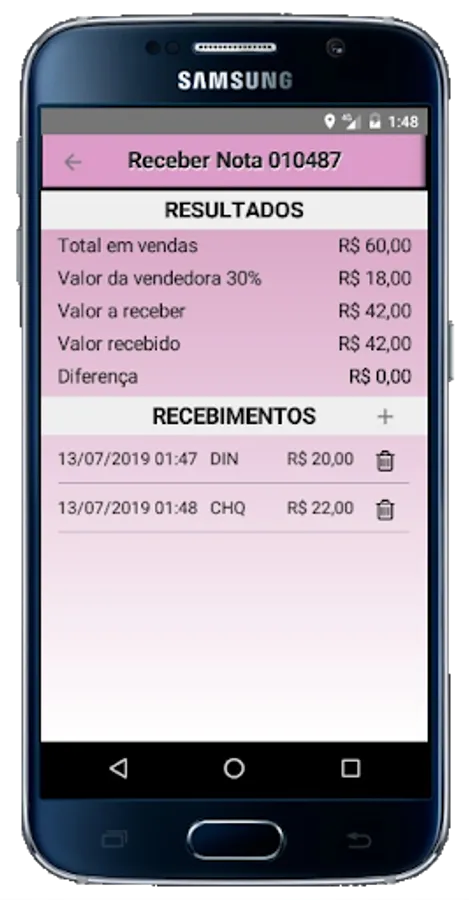 Application for mobile devices that helps the sale of clothing items in the consigned mode, containing the main functions of the system completely offline.