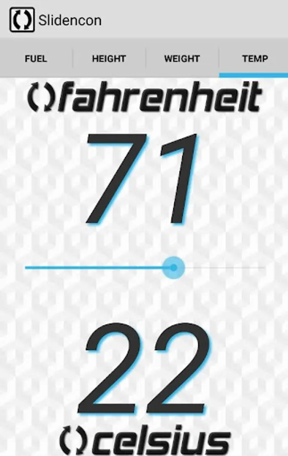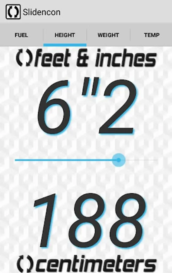 From now on you can easily convert main world values and sizes with our Slide and Convert app! You don’t need to search or type in any numbers, you don’t even need to use your hands! Slidencon is so simple, that you can convert values and get results with your nose! Ha-ha! Mileage? Height & Weight? Temperature, at the end? Slidencon will do this all for you with one sliding move in one millisecond! Download now for free!