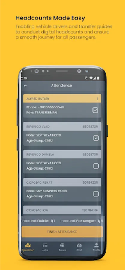 -Drivers can efficiently monitor their task information, guide details, passenger details, and documents through our intuitive application interface.