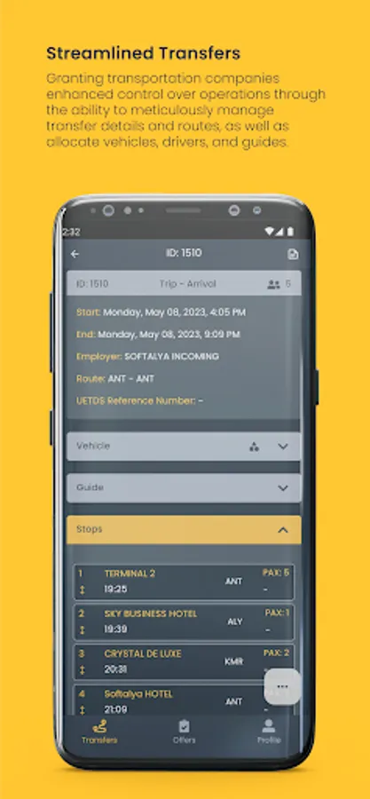 -Transfer guides can streamline their workflow by accessing real-time task information, passenger details, driver details, and vehicle details within the application.