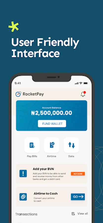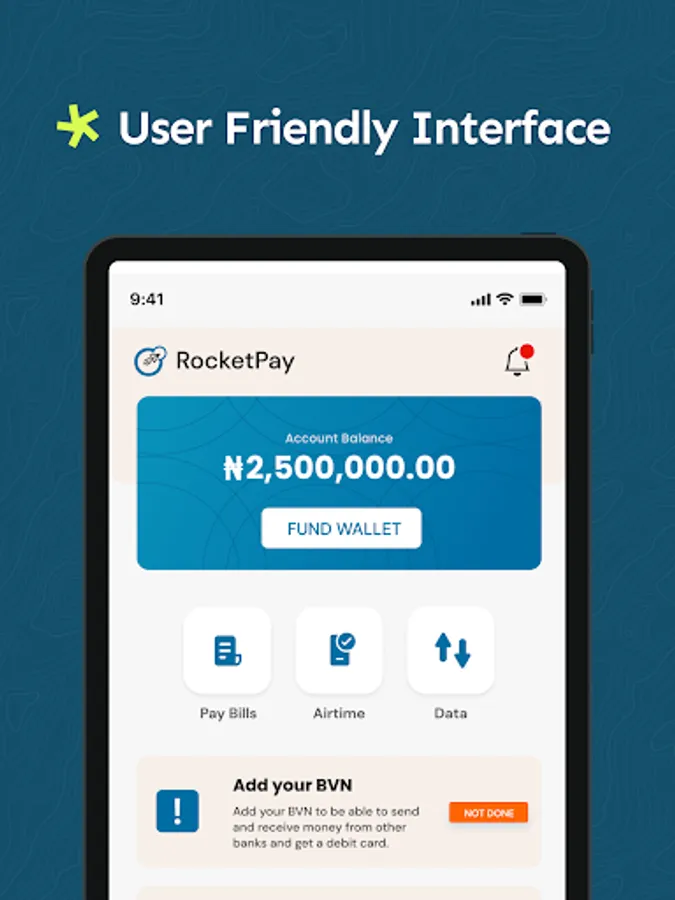 RocketPay offers quick and seamless payment for bills such as Data, Airtime, Gift cards, Electricity and more.